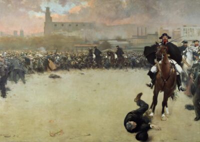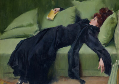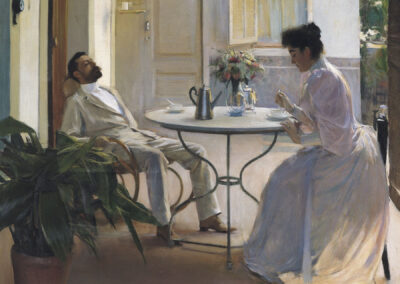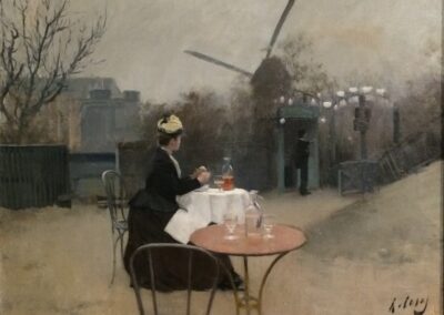 La décennie 1890 est riche pour Casas, partagé entre Paris et Barcelone, où il s’installe à Montmartre, peignant des scènes de cabaret souvent empreintes de mélancolie, rappelant les travaux de Manet et Toulouse-Lautrec. Il expose également le Portrait d’Erik Satie au Salon du Champ-de-Mars et à la Société nationale des beaux-arts. En s’éloignant de la vie bohème parisienne, il retourne à Barcelone et présente des œuvres plus conventionnelles pour séduire une clientèle bourgeoise. Il crée de grandes toiles illustrant les citoyens catalans lors d’événements publics et, après avoir établi son atelier dans l’immeuble familial sur le Passeig de Gracia, inaugure le restaurant-cabaret El Quatre Gats, inspiré du Chat Noir à Paris. À cette période, il conçoit aussi des affiches publicitaires pour des marques telles qu’Anis del Mono et travaille pour la revue moderniste Pel&Ploma. Représentant du modernisme catalan, il contribue à sa diffusion à travers une série de 132 portraits au fusain de personnalités barcelonaises, dont Pablo Picasso, exposée en 1899. En 1900, deux de ses œuvres sont sélectionnées pour l’Exposition universelle à Paris, où il agit en tant que reporter pour Pel&Ploma. Après 1900, son art se concentre sur les portraits, notamment ceux de sa compagne Julia Peraire, rencontrée en 1904 à Madrid. En 1907, lors de la cinquième exposition d’art de Barcelone, il remporte une première médaille pour une étude du portrait du roi Alphonse XIII, acquise par le musée de la ville. Les deux dernières décennies de sa vie sont marquées par son interaction avec le mécène américain Deering, avec qui il voyage aux États-Unis et en Europe. Réalisant des œuvres pour des collectionneurs et reprenant des créations qui avaient fait son succès à la fin du siècle, son art devient peu innovant, s’éloignant des toiles lumineuses de ses années parisiennes. C’est à Barcelone, sa ville natale, qu’il s’éteint en 1932.